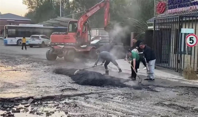 為盡快解決路面問題,消除安全隱患,黃河公司在資金極度緊缺的情況下,本著辦法總比困難多的積極態(tài)度,通過聯(lián)系市政施工隊以進場的方式來修復(fù)破損路面。