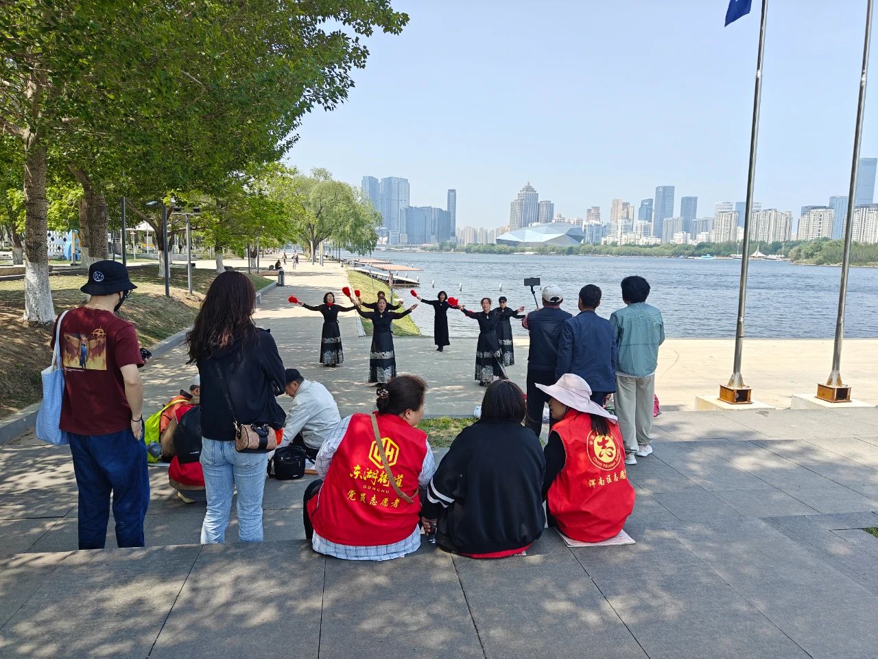 當(dāng)天清晨9點(diǎn),載滿歡聲笑語的公交車準(zhǔn)時(shí)出發(fā)。在奧林匹克公園河畔,老人們漫步林蔭道,賞花觀景、拍照留念,社區(qū)老年模特隊(duì)身著馬面裙,手拿紅色折扇在湖邊翩翩起舞驚艷全場,翩躚身影與粼粼波光相映成趣。返程途中,車廂化身為"流動(dòng)文化站",黨員志愿者帶領(lǐng)老人們開展紅歌聯(lián)唱,《我和我的祖國》《沒有共產(chǎn)黨就沒有新中國》的旋律此起彼伏,溫情涌動(dòng)間拉近了黨群距離。