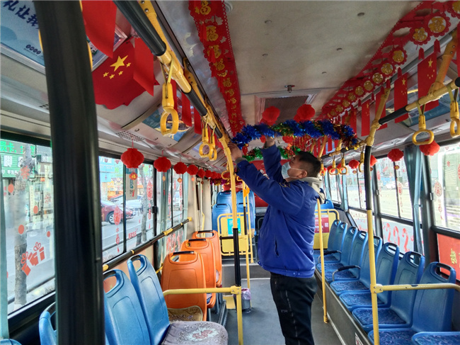 在共產(chǎn)黨員先鋒崗丁亞南駕駛的車上,紅色紙燈籠、藍色綠色拉花、福字串、窗貼,寫著牛年大吉的彩板畫一應(yīng)俱全,節(jié)日氣氛十分濃厚,車廂里不時傳來乘客們的贊揚聲和感謝聲。提到裝扮車廂的初衷,他表示:“這不是疫情嘛,疫情本來大伙心情都比較沉重,我就弄了點兒新年的氣氛,讓大家放松放松心情。我是一名共產(chǎn)黨員,為乘客服好務(wù)是我的宗旨,疫情期間,更需要我們沖鋒在前,迎難而上,為大家樹立好黨員的形象?!?/p>